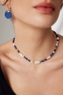 Size: Chain Length Approx. 38cm + 6cm Extension Chain; Pearls Approx. 5mm, 7mm, and 10mm respectively; Lapis Lazuli Approx. 2*4mm